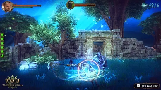 - Side-scrolling, hack-and-slash action adventure.