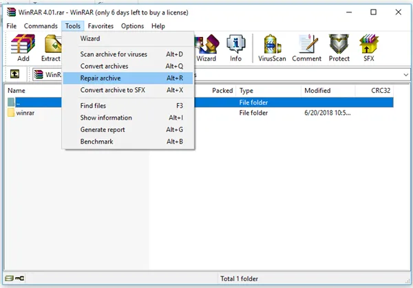 2. Tools >> Repair Archive ( or press “Alt + R” )